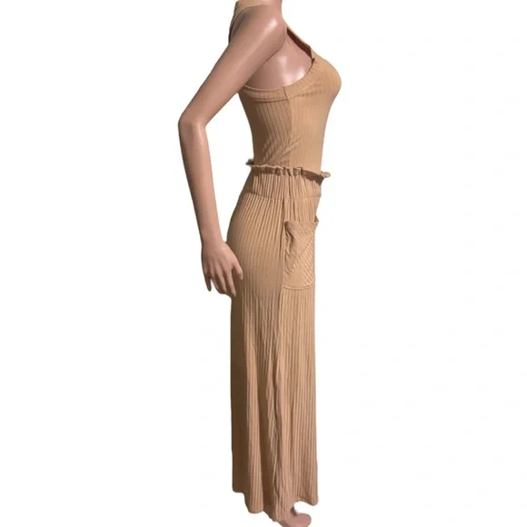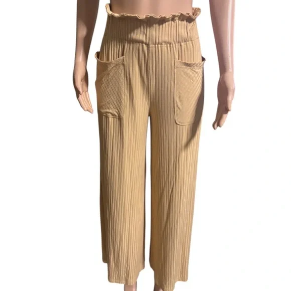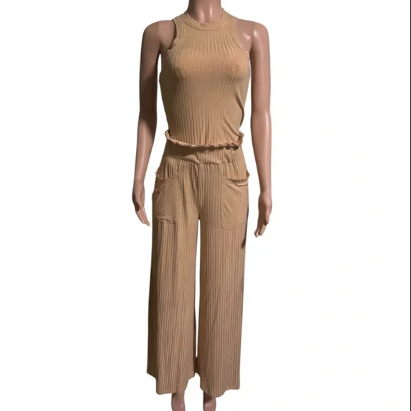 In Excellent Pre Owned Condition FREE PEOPLE MOVEMENT Women’s Blissed Out SetSize: XS/ TPBlissed Out Tank Top and Wide Leg PantsSupremely soft and comfy, these ribbed wide-leg pants are featured in a high-rise style with a gorgeous flowy fit.• Pull-on style• Patched hip pockets• Ruffled waist trim92% Viscose, 8% Elastane