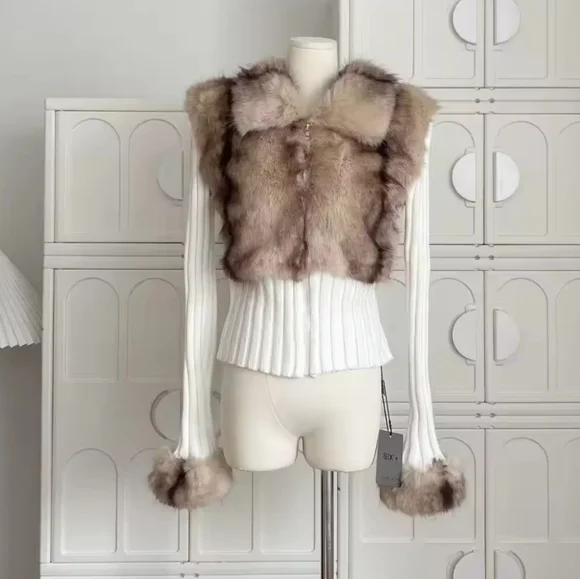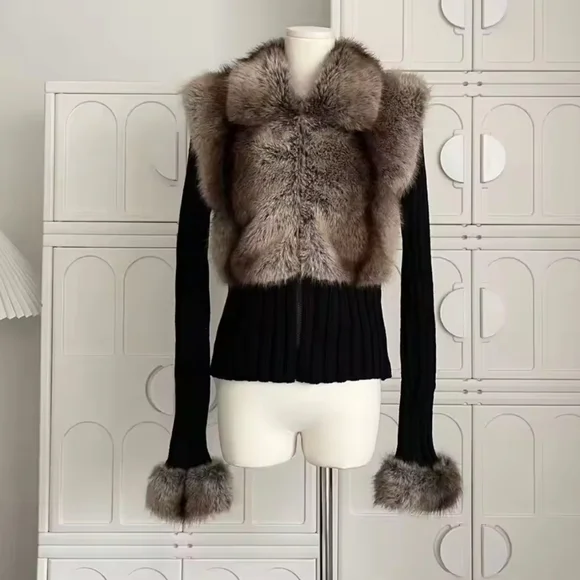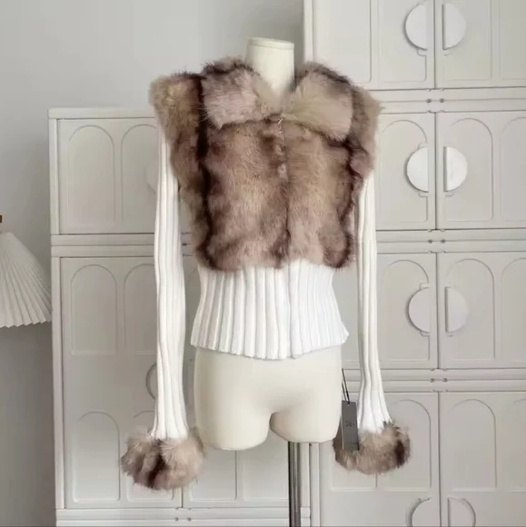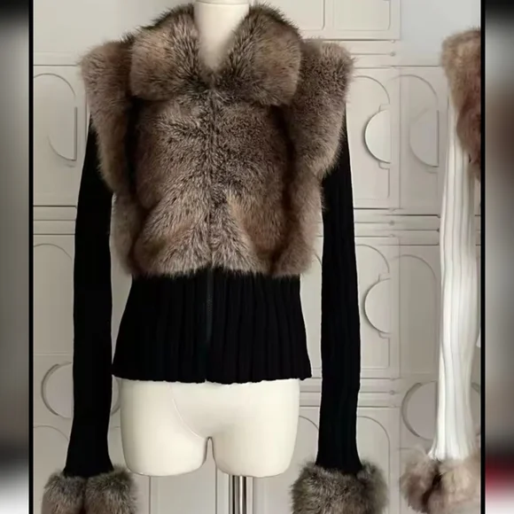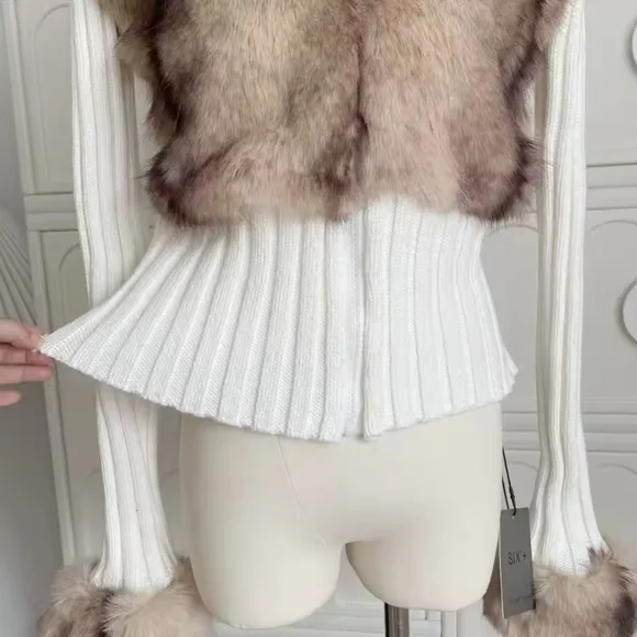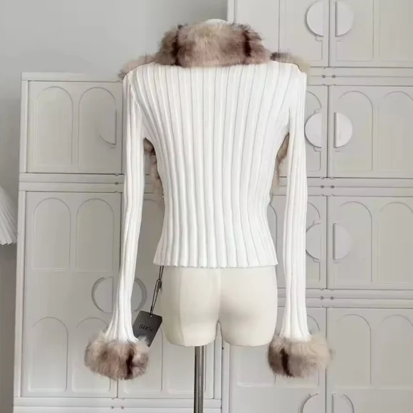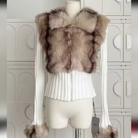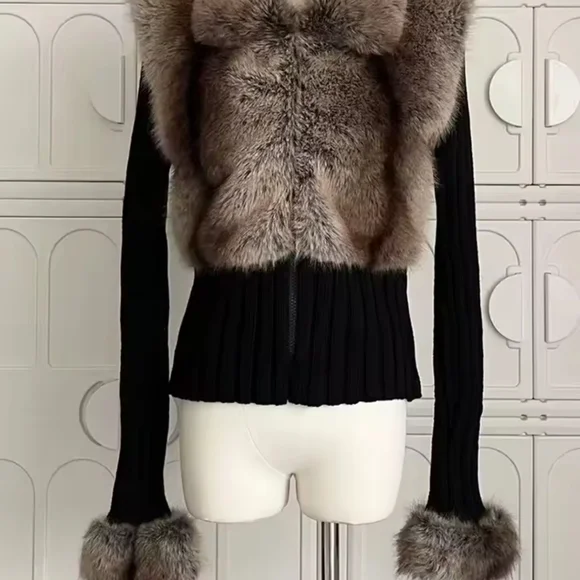 Old Money Long Sleeve Cuddly Faux Fur Sweater Crop Cardigan Full Zip Knitwear
